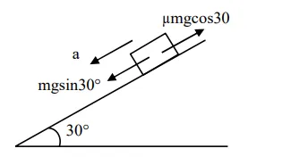 $\mathrm{a}=\mathrm{g} \sin 30^{\circ}-\mu \mathrm{g} \cos 30^{\circ}$