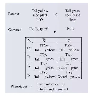 When a cross in made between tall plants with yellow seeds (TtYy) and tall plant with green seed (TtYy),