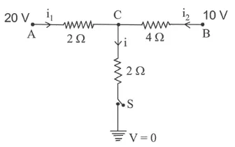 $\therefore \mathrm{i}=\frac{\mathrm{V}}{\mathrm{R}}=\frac{\mathrm{X}}{\mathrm{R}}=\frac{10}{2}=5 \mathrm{~A}$