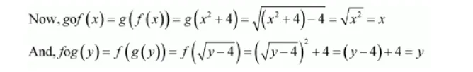 Consider $f: \mathbf{R}_{+} \rightarrow[4, \infty)$ given by $f(x)=x^{2}+4$. Show that $f$ is invertible with the inverse $f^{-1}$ of given $f$ by $f^{-1}(y)=\sqrt{y-4}$, where $\mathbf{R}_{+}$is the set of all non-negative real numbers.