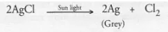 (a). Silver chloride is sensitive to sun light and decomposes slowly to give silver which is grey in colour and chlorine.