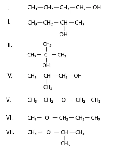 V and VI form pairs of metamers. (metamers of ethers). Here in compounds V and VI, the chain length is the same but the distribution of carbons is different around oxygen atom.