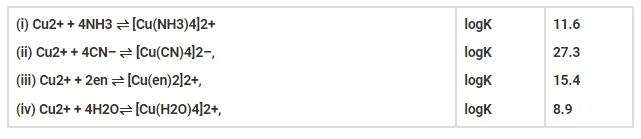 Which of the following complexes formed by Cu2+ ions is most stable?