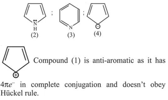 Compounds $(2),(3)$ and $(4)$ are containing $6 \pi e^{-}$in complete conjugation and are aromatic.