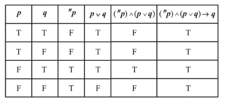 (1) $(\sim \mathrm{p}) \wedge(\mathrm{p} \vee \mathrm{q}) \rightarrow \mathrm{q}$