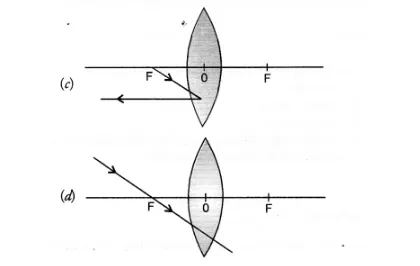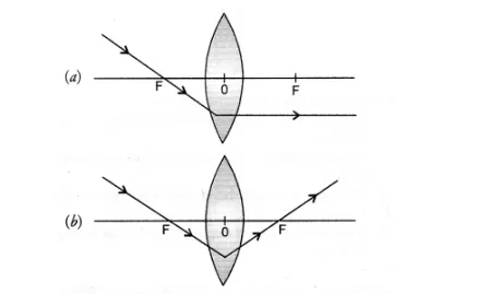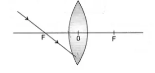 Explanation : A ray of light passing through the focus of a lens travels parallel to the principal axis after refracting through the lens.