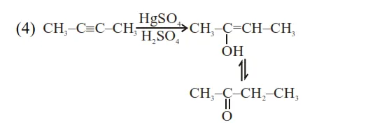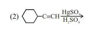 Reaction of $\mathrm{HgSO}_{4} /$ dil. $\mathrm{H}_{2} \mathrm{SO}_{4}$ with alkyne gives addition of water as per markonikoff's rule.