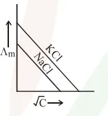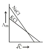 Both $\mathrm{NaCl}$ and $\mathrm{KCl}$ are strong electrolytes and as $\mathrm{Na}^{+}$(aq.) has less conductance than $\mathrm{K}^{+}$(aq.) due to more hydration therefore the graph of option (2) is correct.
