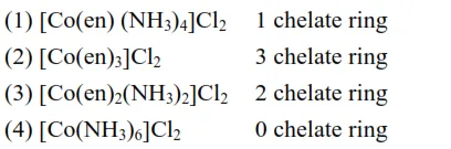 Complex $\left[\mathrm{Co}(\mathrm{en})_{3}\right] \mathrm{Cl}_{2}$ is most stable complex among the given complex compounds because more number of chelate rings are present in this complex as compare to others.
