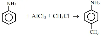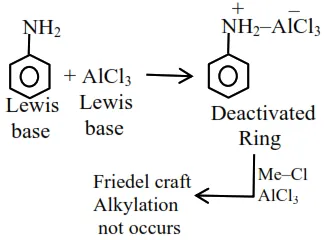 (1) Aniline is lewis base give acid base reaction with $\mathrm{AlCl}_{3}$ and form Anilinium ion