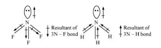 Thus, the resultant moment of the N–H bonds add up to the bond moment of the lone pair (the two being in the same direction), whereas that of the three N – F bonds partly cancels the moment of the lone pair.