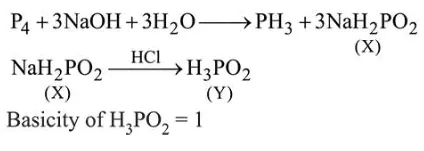 White phosphorus on reaction with concentrated $\mathrm{NaOH}$ solution in an inert atmosphere of $\mathrm{CO}_{2}$ gives phosphine and compound $(X) .(X)$ on acidification with $\mathrm{HCl}$ gives compound $(Y)$. The basicity of compound $(Y)$ is: