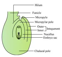 (4) Micropyle – It is a narrow pore formed by the projection of integuments. It marks the point where the pollen tube enters the ovule at the time of fertilization.