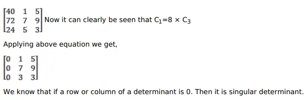 SINGULAR MATRIX A square matrix A is said to be singular if $|A|=0$.