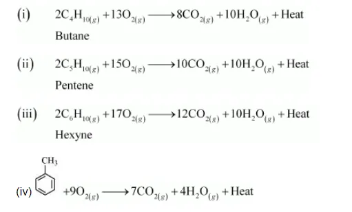 Write chemical equations for combustion reaction of the following hydrocarbons:
