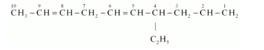 IUPAC name: 4-Ethyldeca-1, 5, 8-triene