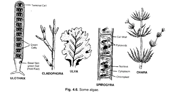 Ulothrix, Cladophora, JJlva, Spirogyra, Chara,