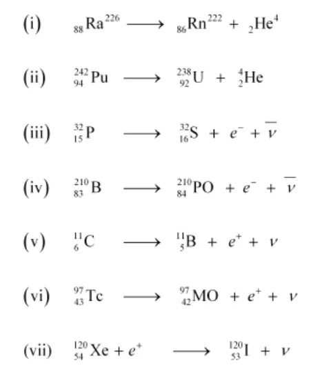 $\alpha$ is a nucleus of helium $\left({ }_{2} \mathrm{He}^{4}\right)$ and $\beta$ is an electron $\left(e^{-}\right.$for $\beta^{-}$and $e^{+}$for $\left.\beta^{+}\right)$. In every $\alpha$-decay, there is a loss of 2 protons and 4 neutrons. In every $\beta^{+}$-decay, there is a loss of 1 proton and a neutrino is emitted from the nucleus. In every $\beta^{-}$-decay, there is a gain of 1 proton and an antineutrino is emitted from the nucleus.