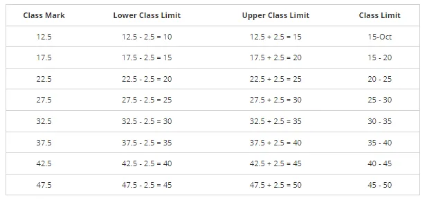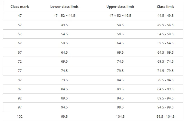 (iii) 12.5, 17.5, 22.5, 27.5, 32.5, 37.5, 42.5, 47.5.