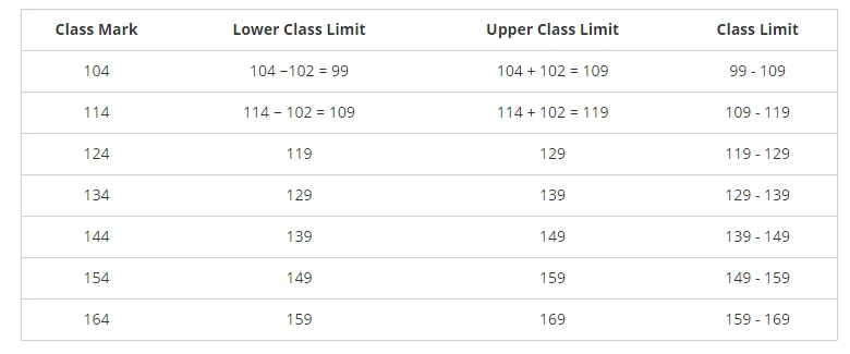 Write the class size and class limits in each of the following: