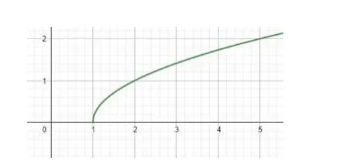 Write the domain and the range of the function, f(x) = $\sqrt{x-1}$