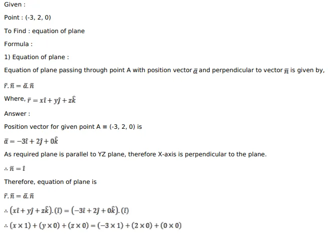 Write the equation of the plane parallel to YZ-plane and passing through the point $(-3,2,0)$.
