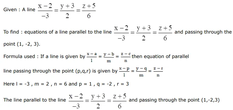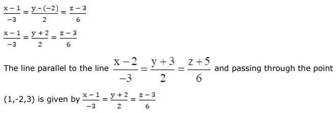 Write the equations of a line parallel to the line $\frac{x-2}{-3}=\frac{y+3}{2}=\frac{z+5}{6}$ and passing through the point $(1,-2,3)$.