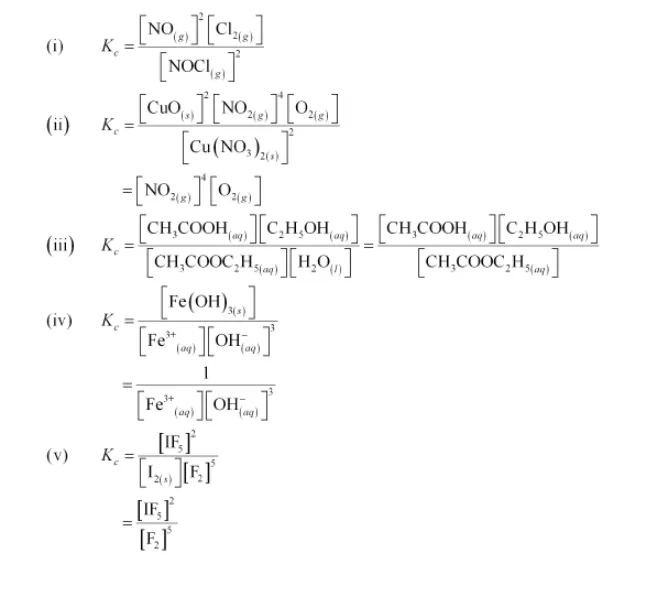 (i) $2 \mathrm{NOCl}(\mathrm{g}) \longleftrightarrow 2 \mathrm{NO}(\mathrm{g})+\mathrm{Cl}_{2}(\mathrm{~g})$
