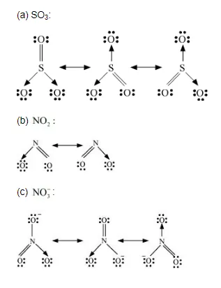 Write the resonance structures for $\mathrm{SO}_{3}, \mathrm{NO}_{2}$ and $\mathrm{NO}_{3}^{-}$.