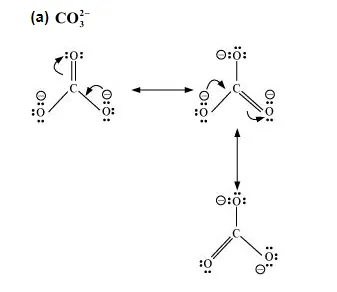 Write the resonance structures of $\mathrm{CO}_{3}^{2-}$ and $\mathrm{HCO}_{3}^{-}$.