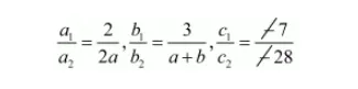 $\frac{a_{1}}{a_{2}}=\frac{b_{1}}{b_{2}}=\frac{c_{1}}{c_{2}}$