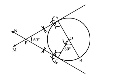 Write the steps of construction for drawing a pair of tangents to a circle of radius 3 cm, which are inclined to each other at an angle of 60º.