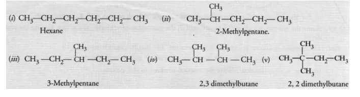 Write the structural formulae of all the isomers of hexane.