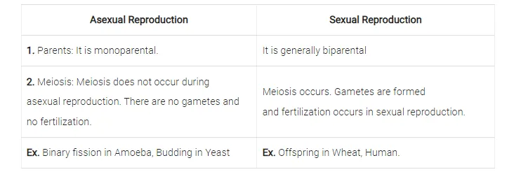 Write two points of differences between asexual and sexual types of reproduction. Describe why variations are observed in the offspring formed by sexual reproduction.