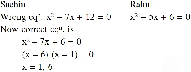 Q. Sachin and Rahul attempted to solve a quadratic equation. Sachin made a mistake in writing down the constant term and ended up in roots (4, 3). Rahul made a mistake in writing down coefficient of x to get roots (3, 2). The correct roots of equation are: