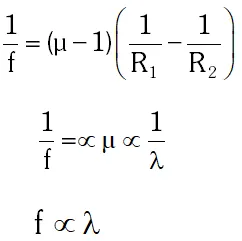 Q. When monochromatic red light is used instead of blue light in a convex lens, its focal length will :- (1) Does not depend on colour of light (2) Increase (3) Decrease (4) Remain same [AIEEE-2011]
