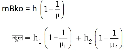 Q. A beaker contains water up to a height $\mathrm{h}_{1}$ and kerosene of height $\mathrm{h}_{2}$ above watger so that the total height of (water + kerosene) is $\left(\mathrm{h}_{1}+\mathrm{h}_{2}\right)$. Refractive index of water is $\mu_{1}$ and that of kerosene is $\mu_{2}$. The apparent shift in the position of the bottom of the beaker when viewed from above is :- $(1)\left(1-\frac{1}{\mu_{1}}\right) \mathrm{h}_{2}+\left(1-\frac{1}{\mu_{2}}\right) \mathrm{h}_{1}$ (2) $\left(1+\frac{1}{\mu_{1}}\right) \mathrm{h}_{1}-\left(1+\frac{1}{\mu_{2}}\right) \mathrm{h}_{2}$ (3) $\left(1-\frac{1}{\mu_{1}}\right) \mathrm{h}_{1}+\left(1-\frac{1}{\mu_{2}}\right) \mathrm{h}_{2}$ $(4)\left(1+\frac{1}{\mu_{1}}\right) \mathrm{h}_{2}-\left(1+\frac{1}{\mu_{2}}\right) \mathrm{h}_{1}$ [AIEEE- 2011]