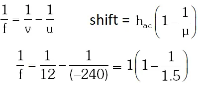 Q. An object 2.4 m in front of a lens forms a sharp image on a film 12 cm behind the lens. A glass plate 1 cm thick, of refractive index 1.50 is interposed between lens and film with its plane faces parallel to film. At what distance (from lens) should object be shifted to be in sharp focus on film ? (1) 5.6 m (2) 7.2 m (3) 2.4 m (4) 3.2 m [AIEEE- 2012]
