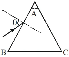 Q. Monochromatic light is incident on a glass prism of angle A. If the refractive index of the material of the prism is $\mu$, a ray, incident at an angle $\theta$, on the face AB would get transmitted through the face AC of the prism provided :