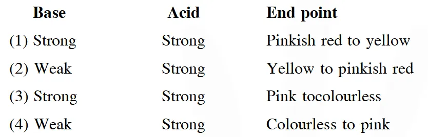 Methyl orange shows Red(pinkish) color in Acidic medium & yellow color in basic medium