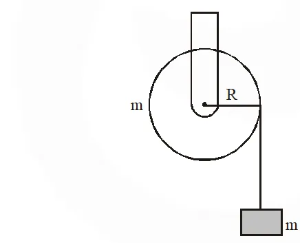 Q. A mass ‘m’ is supported by a massless string wound around a uniform hollow cylinder of mass m and radius R. If the string does not slip on the cylinder, with what acceleration will the mass fall on release?