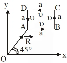 Q. A particle of mass m is moving along the side of a square of side 'a', with a uniform speed in the x-y plane as shown in the figure :