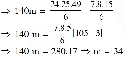 Ans. (3) Given series is $\mathrm{S}=\frac{8^{2}}{5^{2}}+\frac{12^{2}}{5^{2}}+\frac{16^{2}}{5^{2}}+\ldots 10 \mathrm{terms}$ $=\frac{4^{2}}{5^{2}}\left(2^{2}+3^{2}+4^{2}+\ldots .10 \mathrm{terms}\right)$ $=\frac{16}{25}\left(\frac{11.12 .23}{6}-1\right)=\frac{16}{25} \times 505$ $\therefore \mathrm{m}=101$