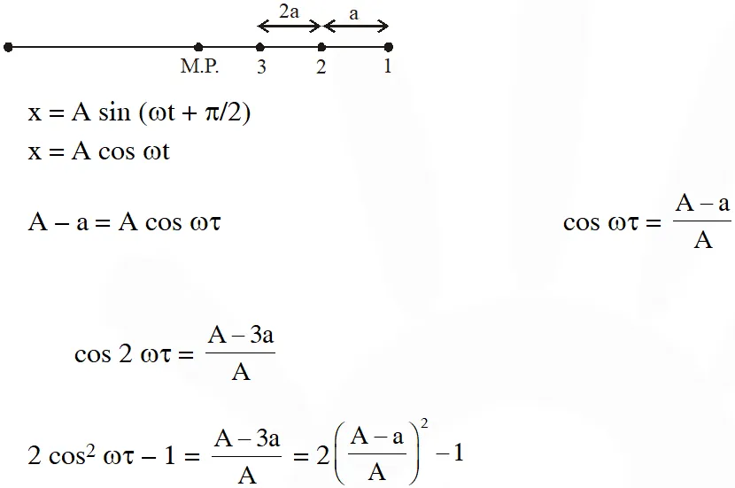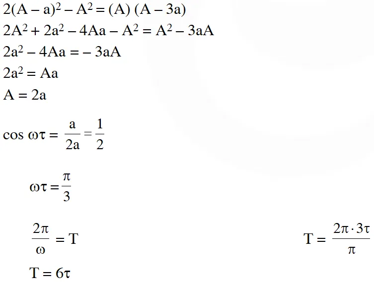 $(3 \mathrm{v})^{2}=\omega^{2}\left(\mathrm{A}^{\prime 2}-\left(\frac{2 \mathrm{A}}{3}\right)^{2}\right) \quad \ldots(2)$