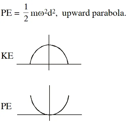 $\mathrm{KE}=\frac{1}{2} \mathrm{m} \omega^{2}\left[\mathrm{A}^{2}-\mathrm{d}^{2}\right],$ downward parabola