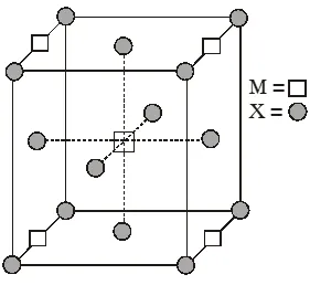 Q. A compound $\mathrm{M}_{\mathrm{p}} \mathrm{X}_{\mathrm{q}}$ has cubic close packing (ccp) arrangement of X. Its unit cell structure is shown below. The empirical formula of the compound is :