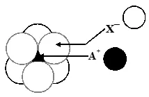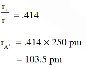 Q. The arrangement of $\mathrm{X}^{-}$ ions around $\mathrm{A}^{+}$ ion in solid AX is given in the figure (not drawn to scale). If the radius of $\mathrm{X}^{-}$ is 250 pm, the radius of $\mathrm{A}^{+}$ is -