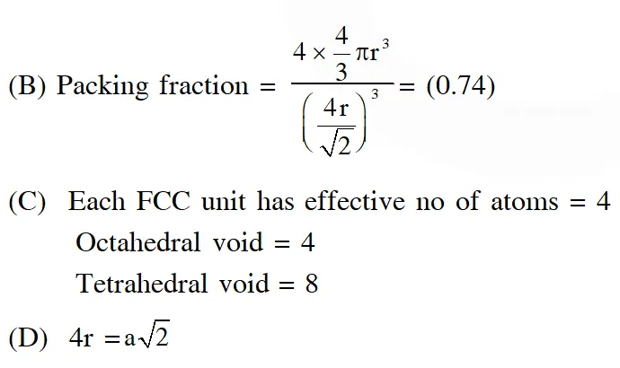 Q. A crystalline solid of a pure substance has a face-centred cubic structure with a cell edge of