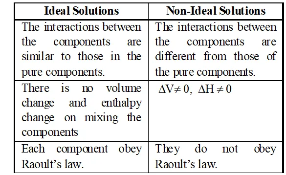 Q. Ristinguish between ideal and non ideal solutions. [MP 2001, 02, 06]