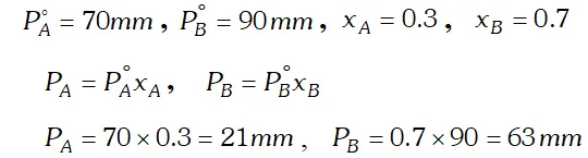 Relationships between V.P. and mole fraction for ideal solution